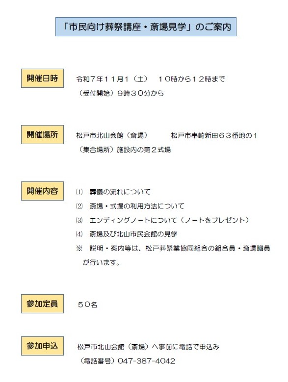 > 市民向け葬祭講座及び斎場見学の開催について(お知らせ)